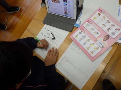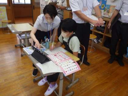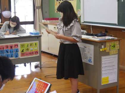 学校訪問と並行して、5・6年生の外国語科の授業を教科領域等指導員の先生に見ていただきます。