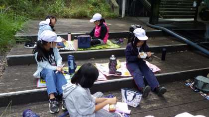 今日は天候にも恵まれました。外で食べるお弁当はおいしいですね。感染症対策にもなります。職場体験で近くの中学生が来ていました。その生徒と一緒に記念撮影。
