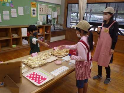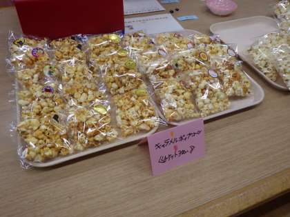 お待たせしました。やまびこ学級のポップコーン屋さんが開店です。