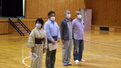 講師さんの紹介です。最後の歌舞伎となりました。歌舞伎指導の3名と踊り指導のおひとり合わせて4名の講師に教えていただきます。