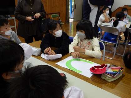 3・4年生は、絵しりとりです。グループで協力して絵をかいています。