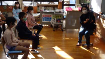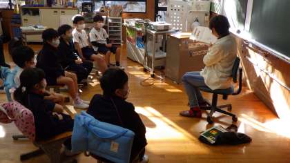 毎月、月2回程度読み聞かせボランティアさんによる本の読み聞かせを行っています。今日は低学年は「ぐりとぐら」、高学年は「あおのじかん」「どんぐりずもう」を読んでくれました。