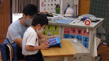 今日は、ICT支援員さんが来て、学習用タブレットを使った授業を行いました。低学年は、iMovieを使って動画編集を行いました。低学年には少し難しい操作もありましたが、意外や意外飲み込みも早く、すぐにやり方を覚えて、曲をつけたり、写真をつなげたりして楽しく活動していました。
