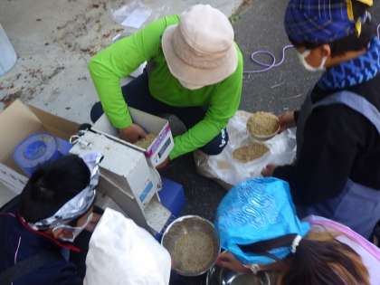 本当なら精米も行う予定でしたが、機械の具合が悪く、コイン精米でやることになりました。