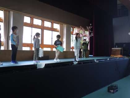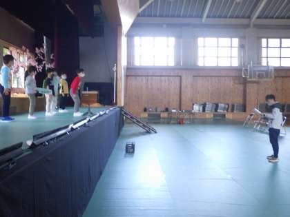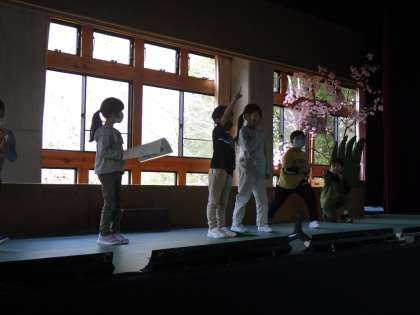1・2年生劇の練習 セリフだけでなく大きな動きをつけて話します。