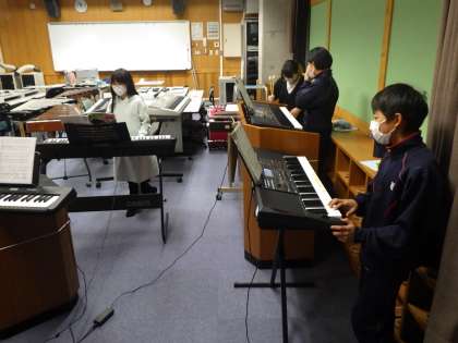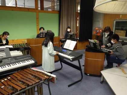 現在音楽室が、明後日のアトラクションに使用されるため、楽器類がなんとパソコンルームに片付けられています。