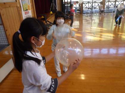 ロケットを飛ばしたり、風船バレーをしたりと楽しみました。