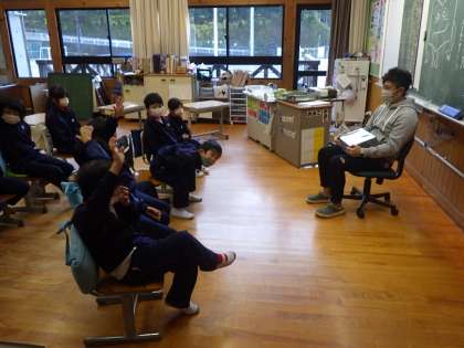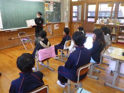 低学年は担任が行いました。読み聞かせの代わりに連想ゲーム的なことをやっています。