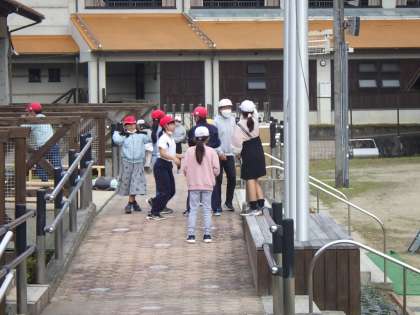 放課後子どもたちがそぞれぞれで遊んでいます。すると、6年生の子がおにごっこをしようと呼びかけ、みんなで楽しく遊んでいました。小規模校の良いところですね。