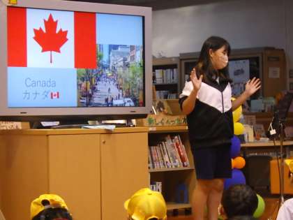子どもたちが自分の紹介したい国を英語でスピーチしました。