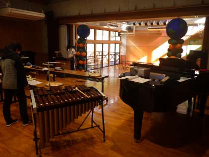 まあまあ広い音楽室に、4人が結構離れて演奏しています。