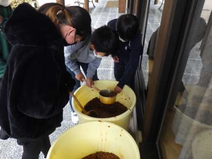 本校が工事でしたので、久しぶりに醤油樽がもどってきました。