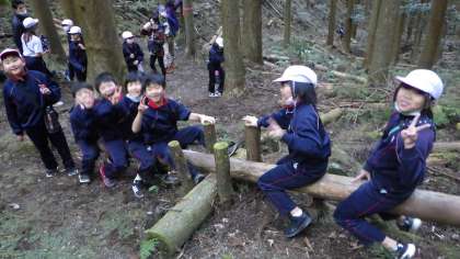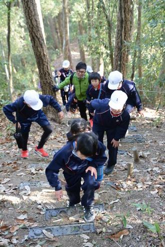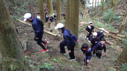 本校の新年恒例行事、三角山の頂上から将来の夢を叫びます。