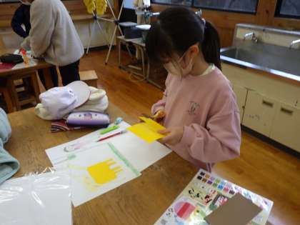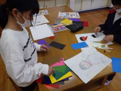 3・4年生図画工作。 シール状になっているので、貼るのが簡単です。