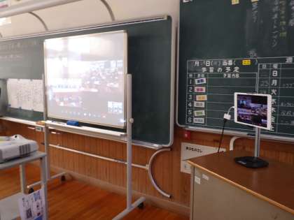 大蔵小学校の先生がメインで、明和小学校、新盛小学校とオンラインで授業を行いました。