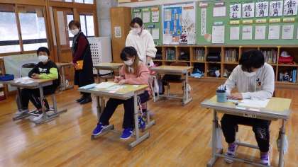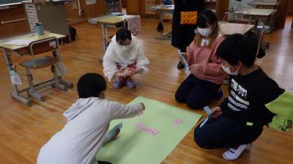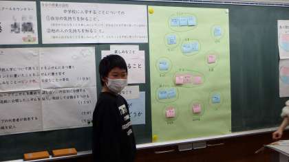 6年生に、中学校生活で楽しみなこと、不安なことなどを普選に書いて整理します。