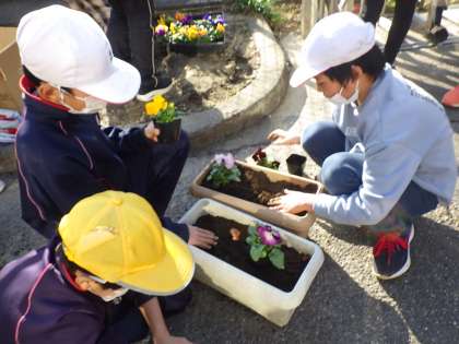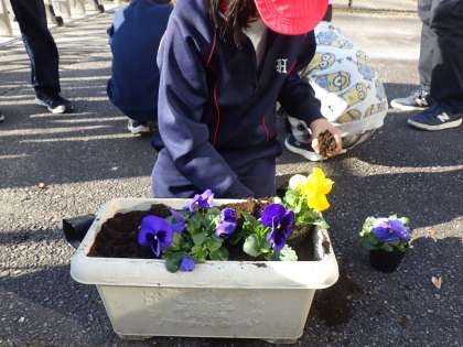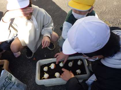 全校でチューリップの球根を植えています。