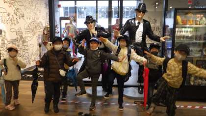 駅の隣にある「kitara」に入りました。面白い人形がありました。
