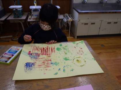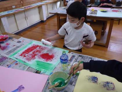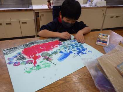 1・2年生図画工作。 いろんなものをスタンプにした作品です。