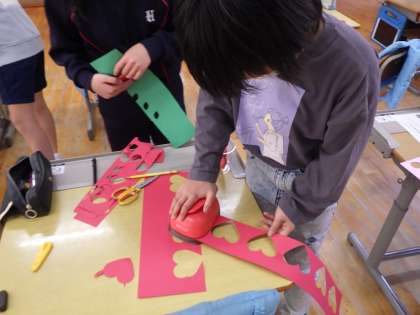 3・4年生特別活動。 これは卒業生を送る会のために飾りを作っているのでしょうね。