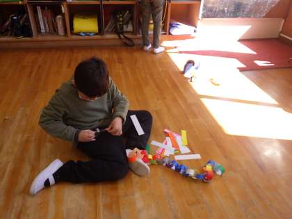 下校までの時間に、もくもくと折り紙リングを作っています。