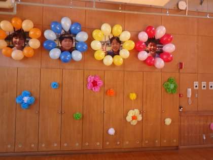 風船越しに見える卒業生の顔写真がリアルです。