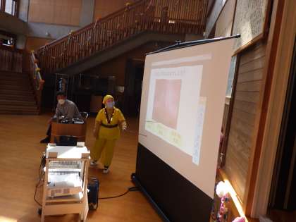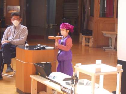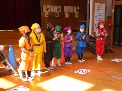 6年生や学校に関するクイズを出していました。一人ひとり上手にできました。
