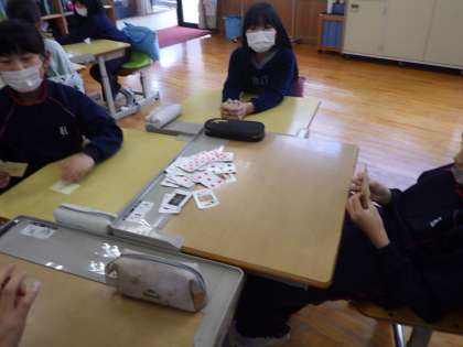 3・4年生外国語活動 「セブンプリーズ」など、英語を使ってトランプ遊びです。