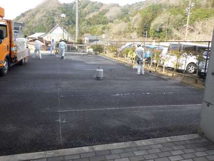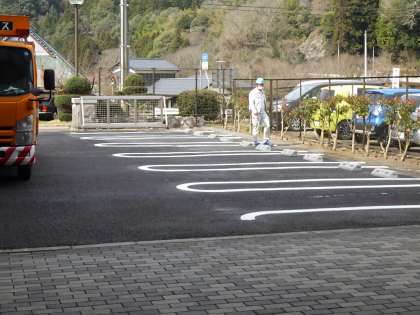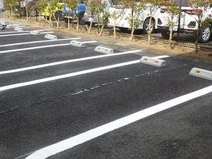 職員駐車場の車を停めやすくするため、ラインを引き直しました。