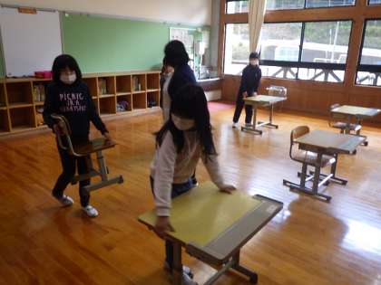 本校は本日来年度の教室移動をします。お世話になった教室をきれいにします。