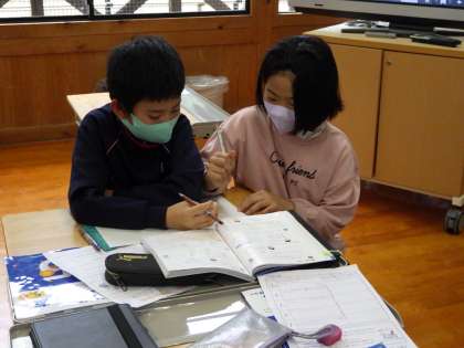 5年算数の授業研究を1限に行いました。「少数のかけ算」の授業です。少数×少数の計算の仕方を相談しながら、問題を解いています。
