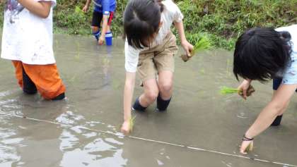 2年生以上は昨年度も行っているので慣れています。1年生も上手に植えていました。