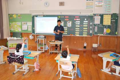 1年生は、朝起きて学校に行くまでの生活パターンを振り返ることから、プログラミングについて子どもたちは考えていました。