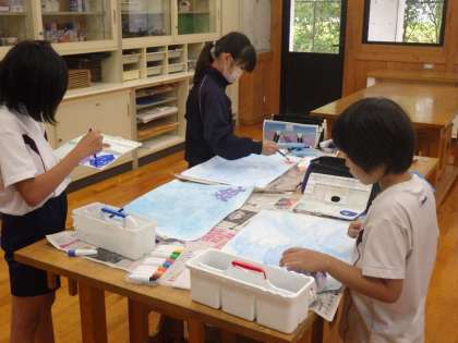 教頭先生の図工の様子です。私の6月の絵という題材です。各自が6月をイメージして絵を描いています。どんな作品が出来上がるか楽しみですね!