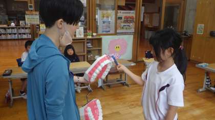 歯磨きの仕方を動画や模型を使って学びました。正しい歯の磨く順番や磨き方をこれからも続けていきましょう!