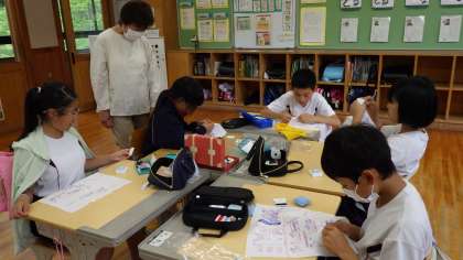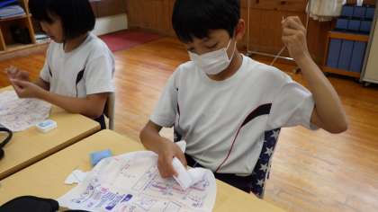 5・6年家庭科の授業で波縫いに挑戦しました。