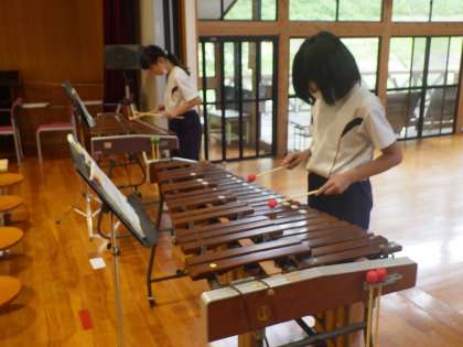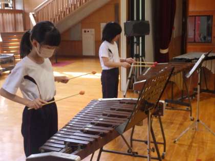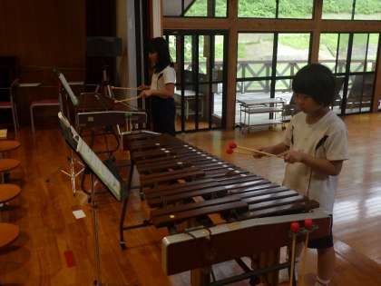 3・4年生の音楽の授業です。「ゆかいな木琴」という曲名なので木琴で演奏してみようとなり、2人1組で練習です。音階を覚えて曲のスピードについていけるように練習しています。発表が楽しみだね!