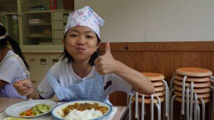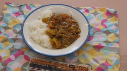 家庭科で調理実習をしました。カレーライスとゆで野菜サラダを作りました。火や包丁を使いながら、調理に挑戦しました。無事に美味しいカレーとサラダを作れました。