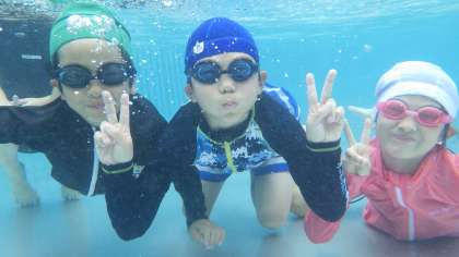 1・2年生の水泳学習の様子です。水の中に潜れる子が増えて、水中を楽しんでいます。