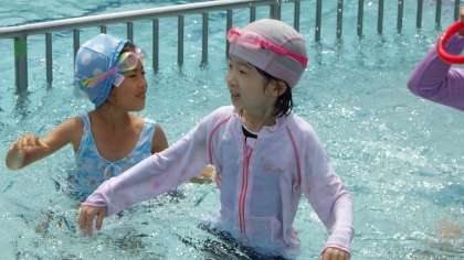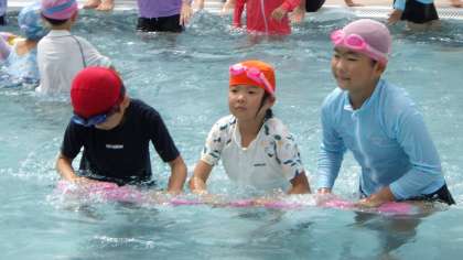 初回と比べると水に顔をつけられるようになったり、足をつかずに20m泳げるようになったりと大きな成長を感じました。みんなの笑顔がはじけて素敵でした!