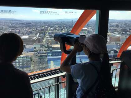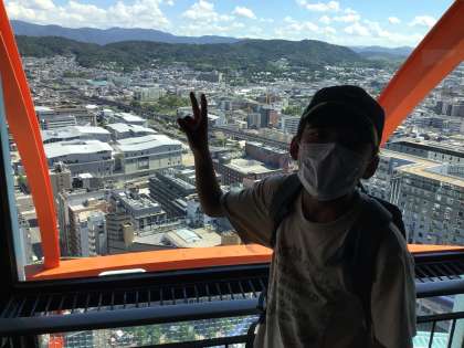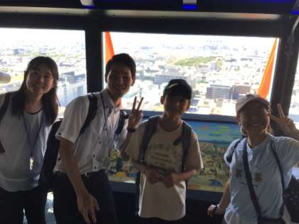 展望台まで上りました。天気が良くて良い眺め。みんな逆光