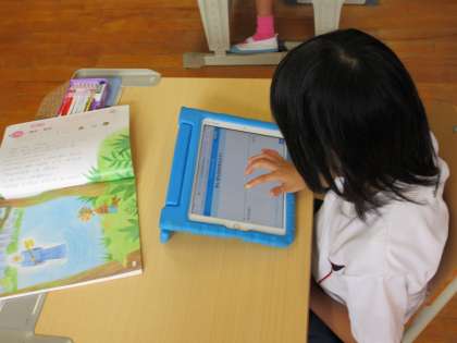 正直に生活しようとする気持ちを高めることをねらいとする授業でした。ICT機器や役割演技を効果的に取り入れ、子どもたちは積極的に活動していました。