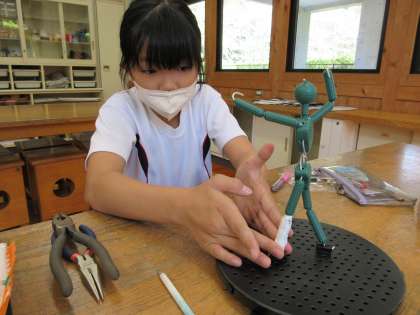 10年後20年後の自分の姿を想像して、未来の自分の姿を作っています。今回は芯材を完成させて、紙粘土を貼り付けて、肉付けしました。
