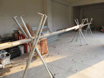 5・6年が先生と一緒に稲架掛けを作りました。これでスムーズに稲刈りをし、束ねた稲を棒に架けて天日(太陽光線)と自然風によって乾燥させることができますね。