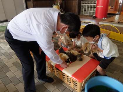 丁度、東広瀬小学校との交流会もあり、子どもたちや動物と楽しく触れ合っていらっしゃいました。また、職員一人一人に気軽に声をかけてくださいました。