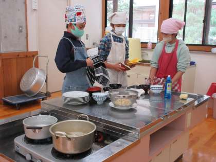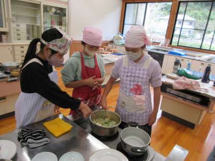 ご飯とみそ汁を作る調理実習を行いました。煮干しで出汁をとったり、火でご飯を炊いたりしました。美味しいご飯とみそ汁を作ることができました。
