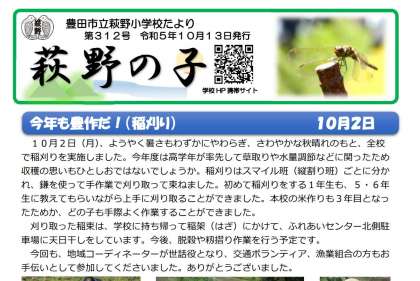 10月13日(金)学校だより「萩野の子」312号