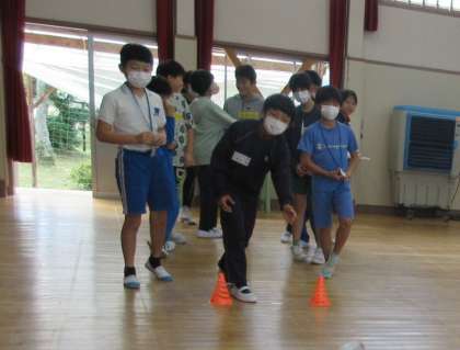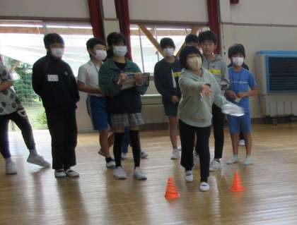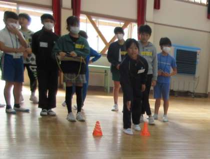 外国語の授業の後は、お楽しみお別れ会でした。グループに分かれてモルックをしました。楽しく他校の子どもたちと交流ができました。