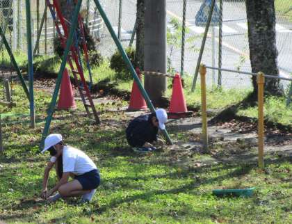 日を追うごとに涼しさを感じるようになりました。運動場の草取りにも力が入ります。