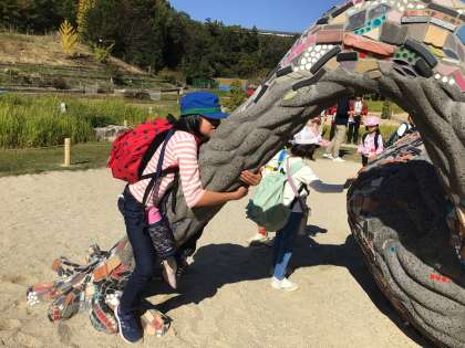 もののけ 滑り台2回目に並ぶ純粋な子たち